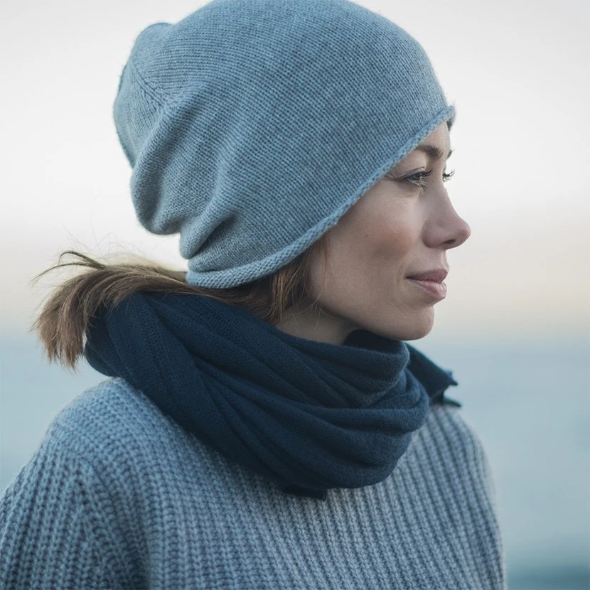 Hats and scarves are the perfect companion for a morning walk on the beach.